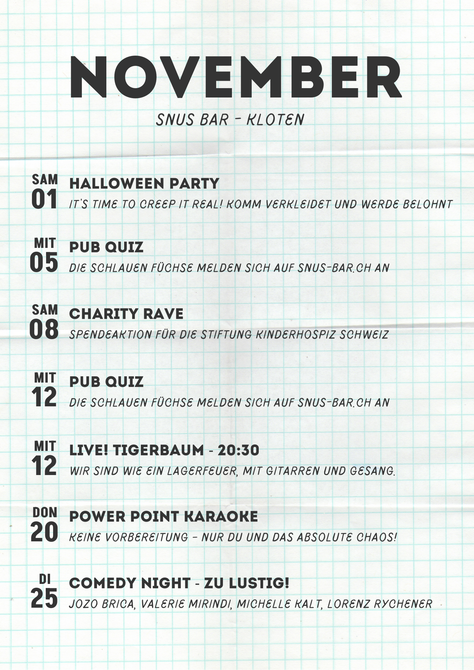 Mal ist es gemütlich wie in Grosis-Stube und mal geht hier richtig die Post ab: Die Snus Bar in Kloten ist Bar, Restaurant, Club, Bühne, Treffpunkt für Alle und ein echter Lieblingsort.